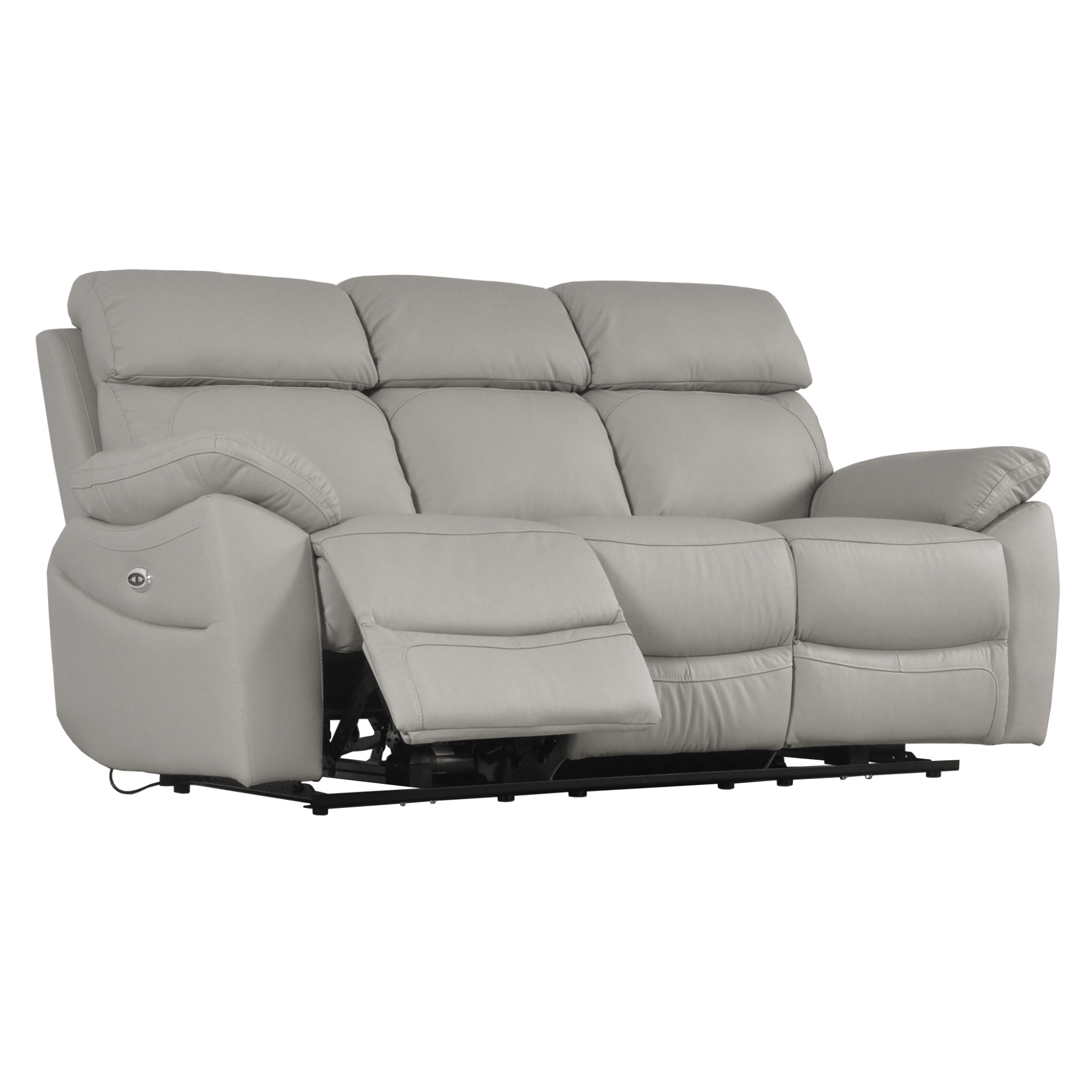 Dandrea Genuine Leather Light Grey Electric Power Recliner 3 Seater Sofa