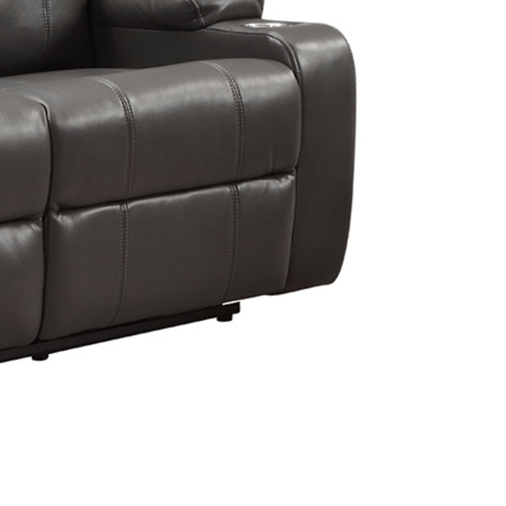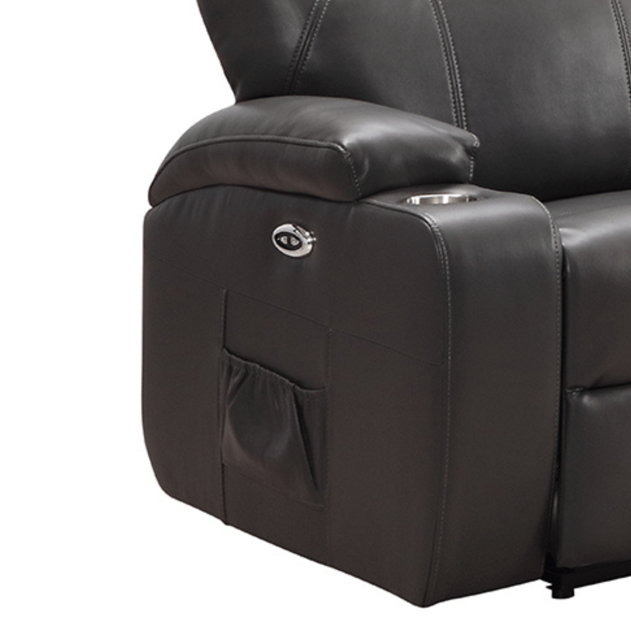 Cinema Grey Electric Leather 3 Seater Recliner Sofa With Two Cup Holders