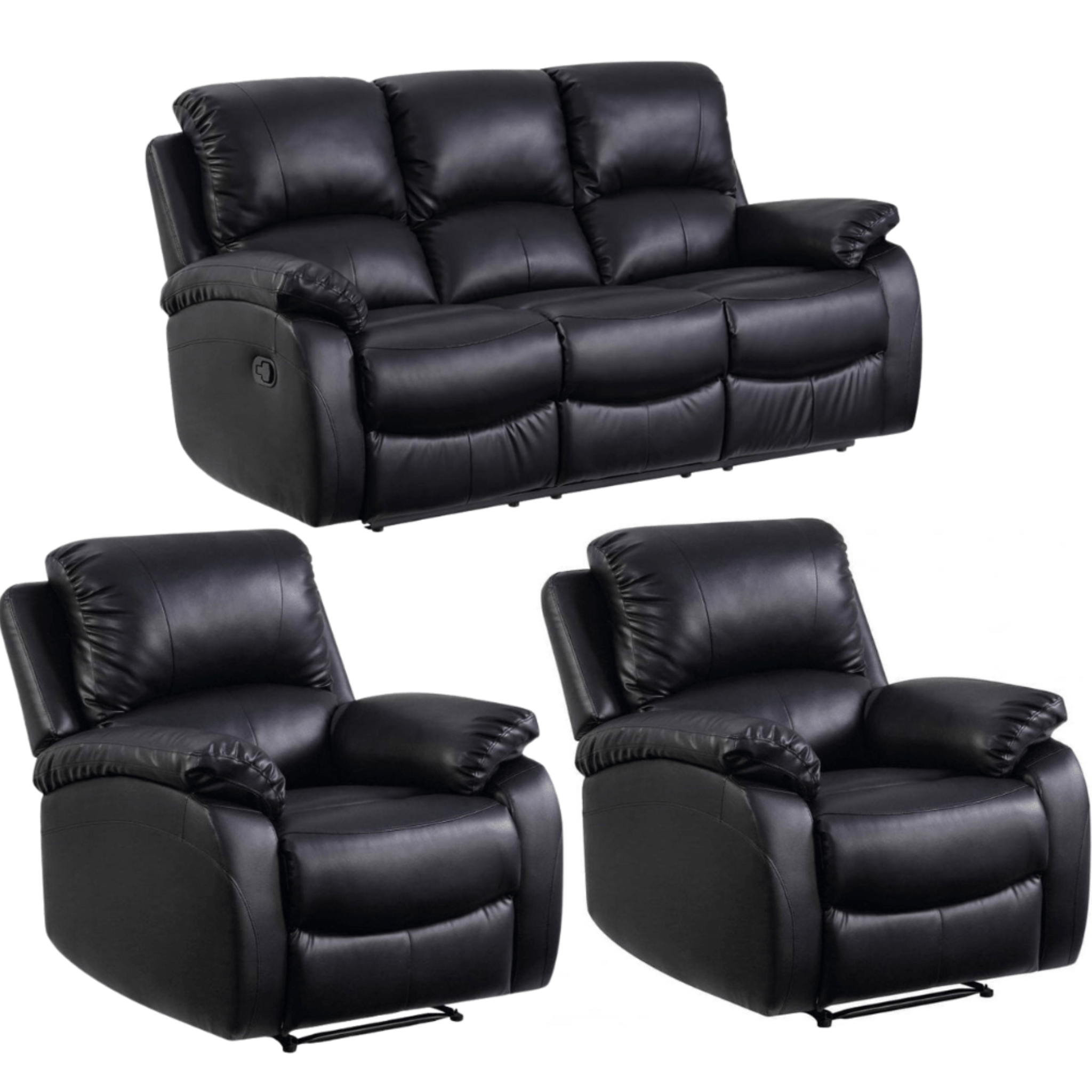 Roma Black Leather Manual Recliner 3+1+1 Seater Sofa Set