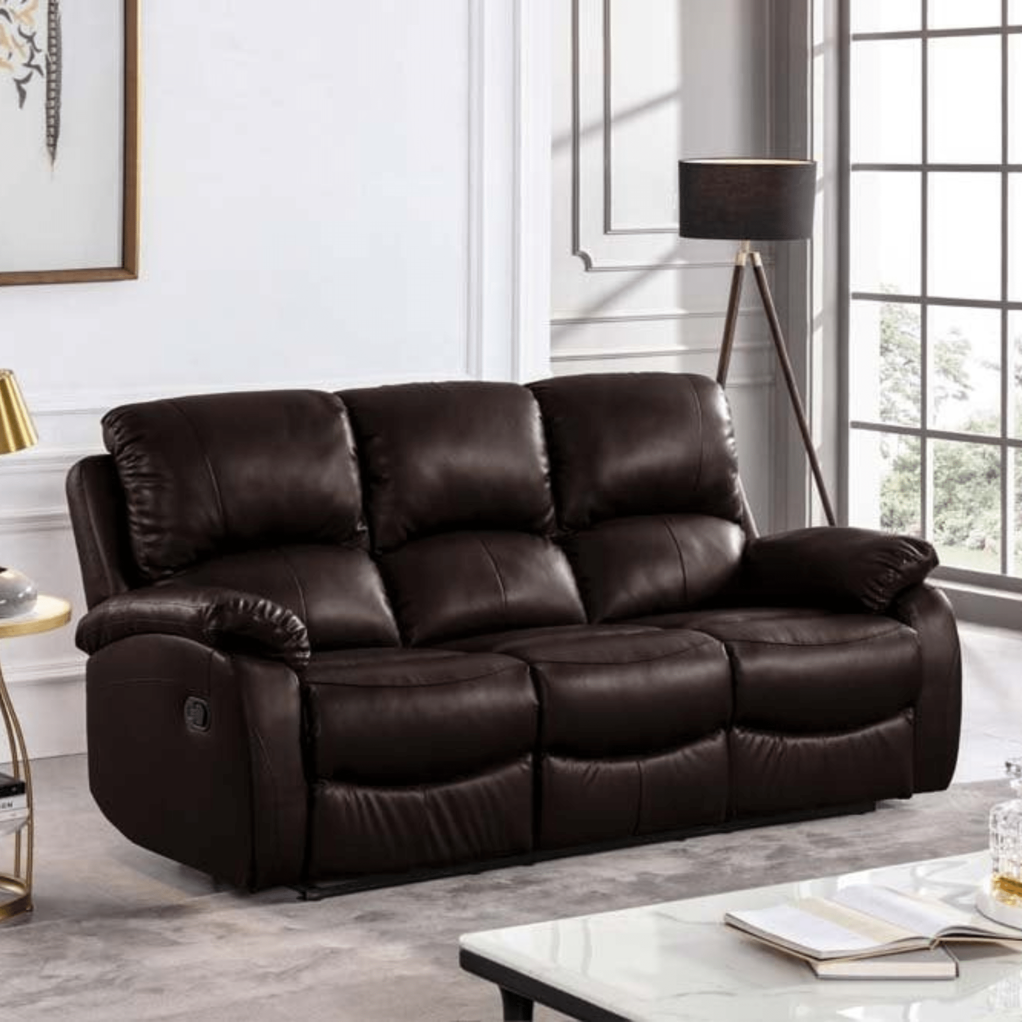 Stylish and versatile, the Roma Brown Leather 3+2+1 Recliner Sofa Set is a practical choice for anyone looking to combine comfort with classic design.