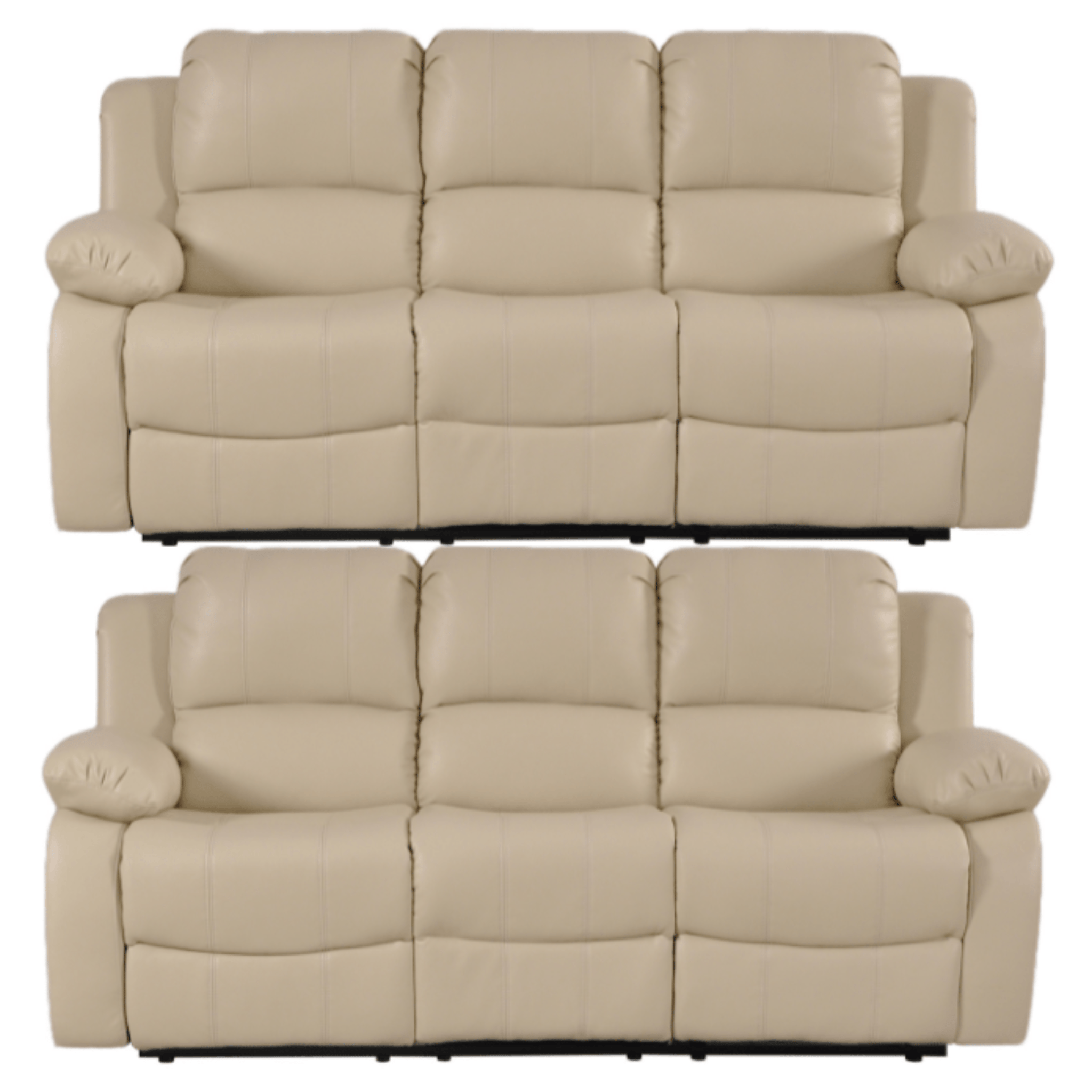 This set includes two three-seater recliner sofas. Each sofa comes with manual recliners at both ends, allowing you to sit back and relax at the pull of a handle. Together, they provide generous seating for families, guests, or anyone who loves extra space to unwind.
