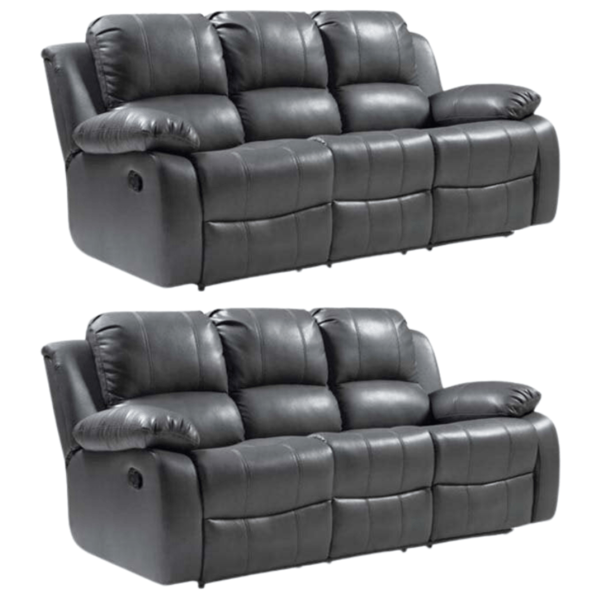 Valencia Grey Leather Manual Recliner 3+3 Seater Sofa Set