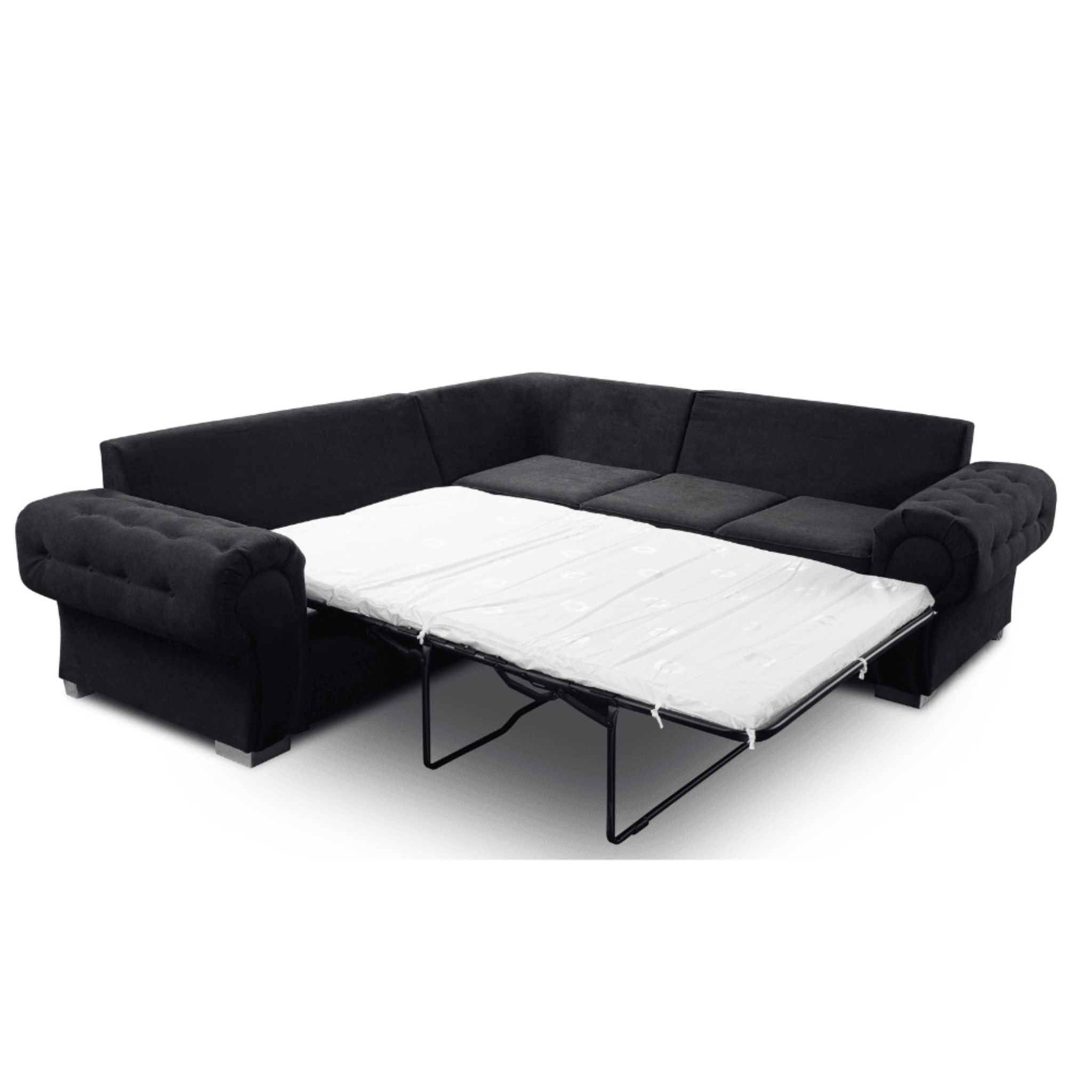 The Verona High Back Black Fabric Corner Sofa Bed is a practical and stylish choice for any modern home. Designed to provide both seating and sleeping space, it works perfectly as a corner sofa during the day and quickly transforms into a comfortable bed at night.